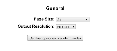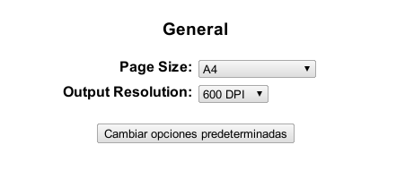 Ponemos las siguientes configuraciones y «Pulsando en Cambiar Opciones Predeterminadas«: