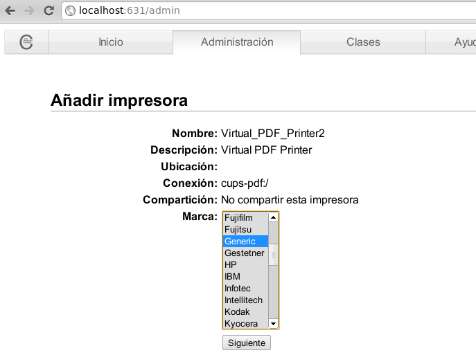 Pulsamos nuevamente «Siguiente«, y elegimos la marca Generic: